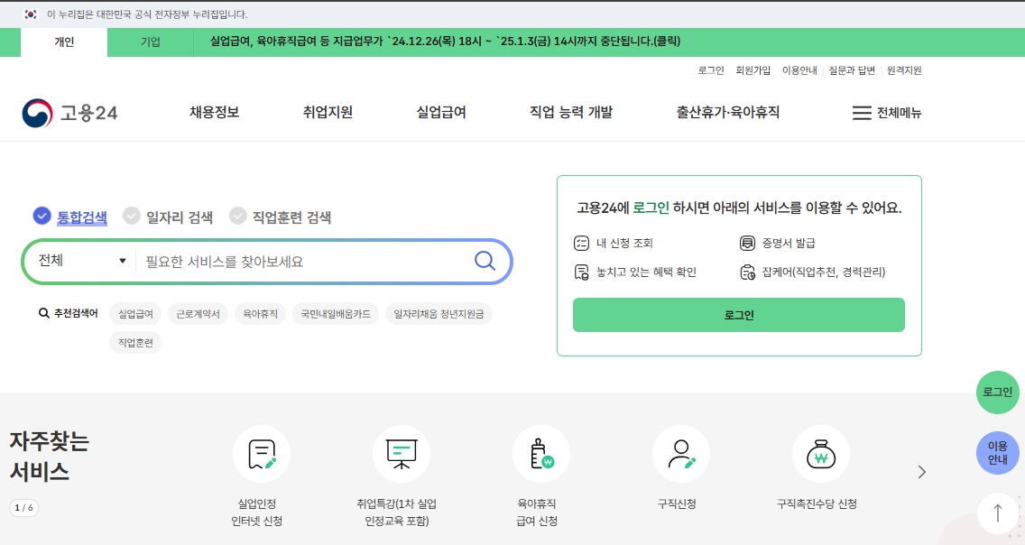 - 고용보험 24 홈페이지 접속