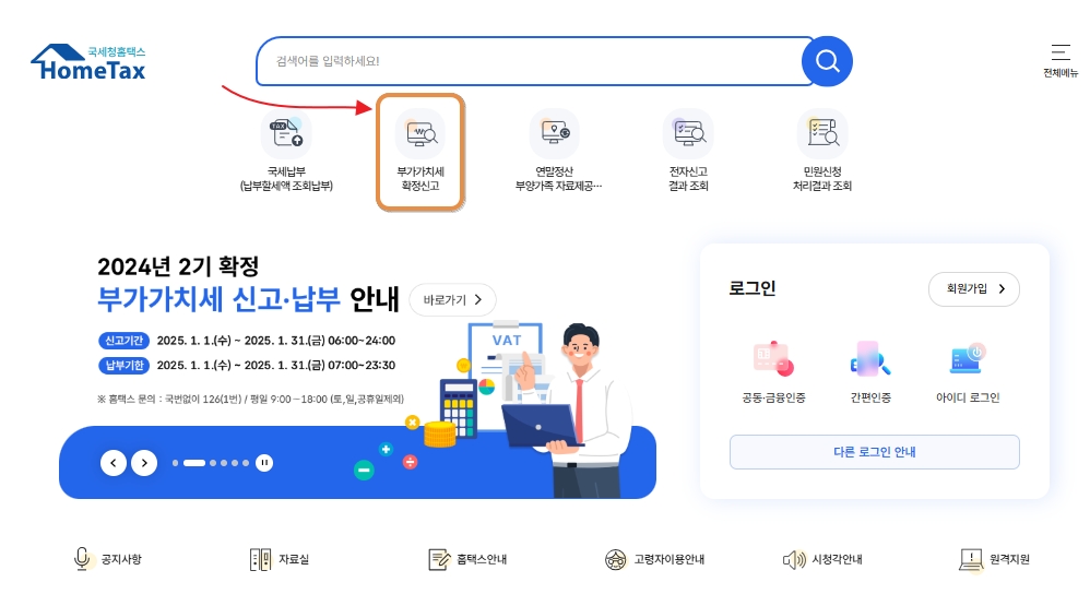- 2기: 7월 1일 ~ 12월 31일 (신고 및 납부: 다음 해 1월 1일 ~ 1월 25일)