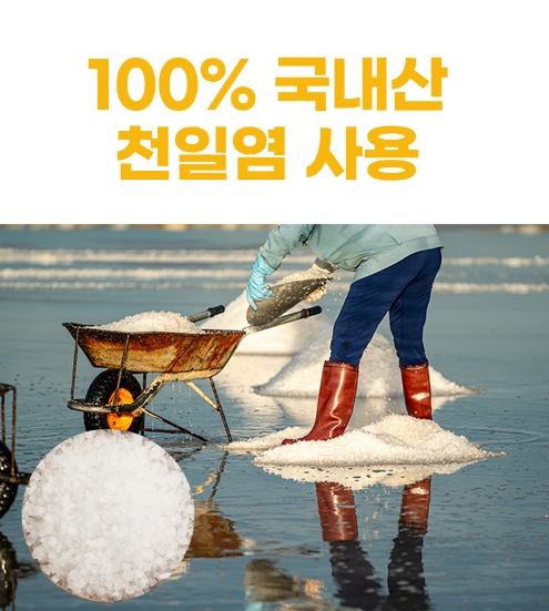 국내산 100% 천일염을 사용하여 전통방식 그대로 절임배추를 만듭니다.