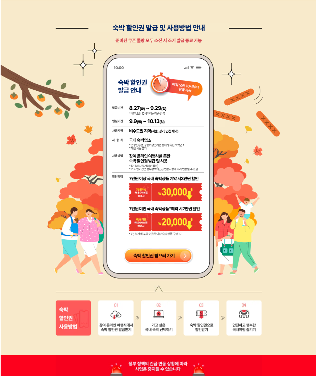 - 쿠폰신청기간: 2024. 8. 27.(화) ~ 9. 20.(일) 매일 오전 10시, 선착순으로 할인 쿠폰을 신청하고 발급받습니다.