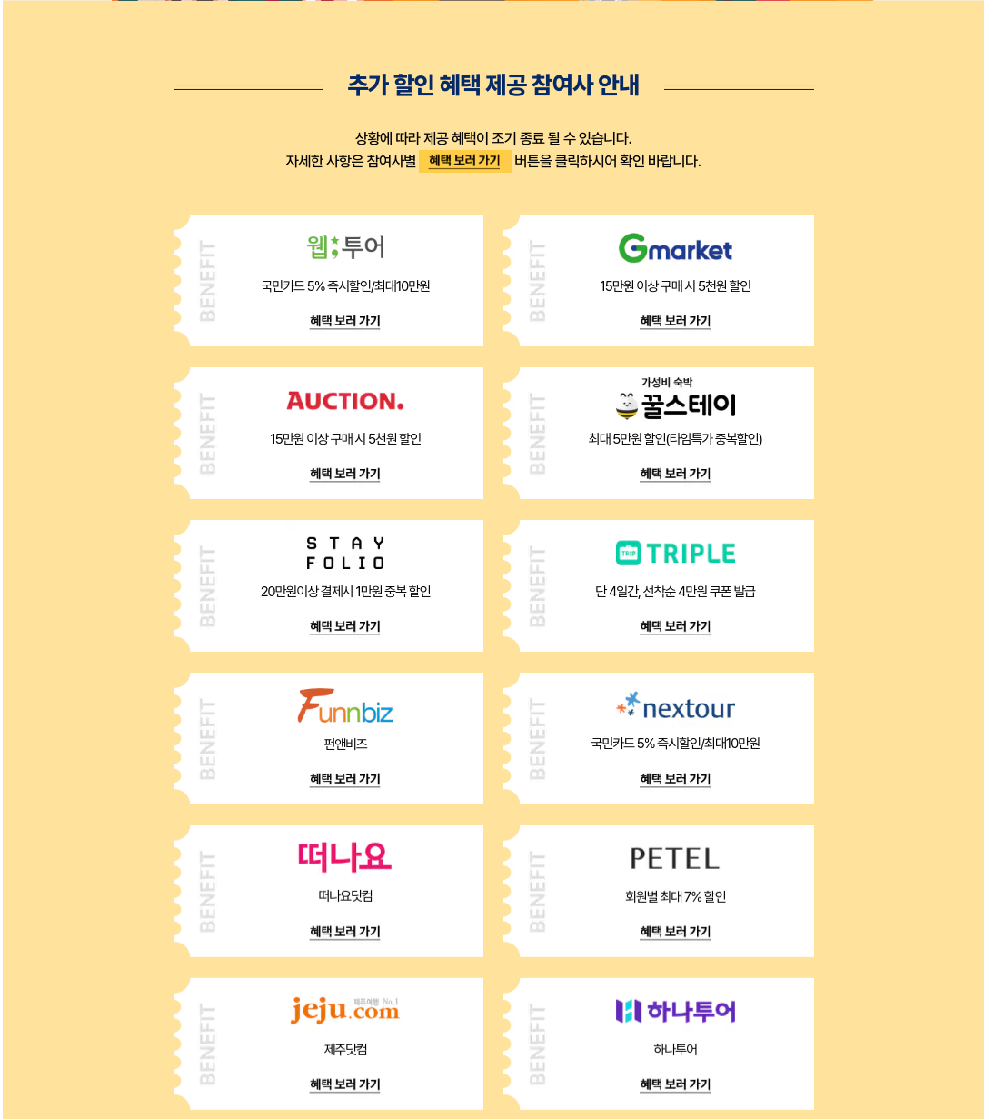 - 추가 할인: 참여 여행사별 추가 할인 혜택도 누릴 수 있습니다.