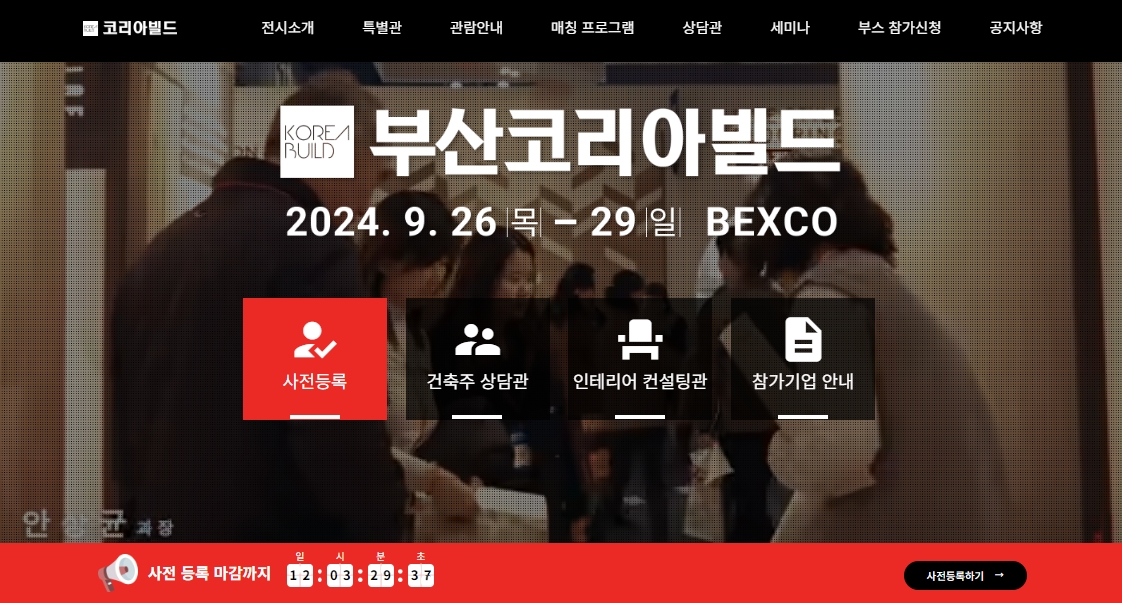 - 사전등록하기: 부산코리아빌드 홈페이지를 방문하여 "관람안내" - "사전등록(무료관람예약)"을 통해 사전등록을 합니다.
