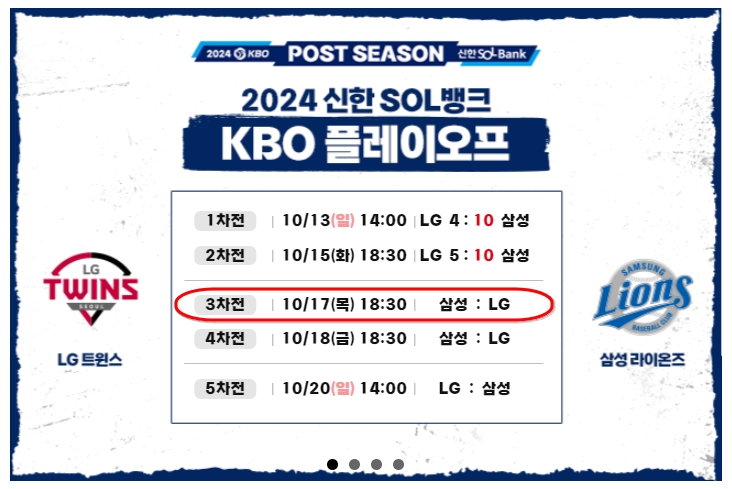 플레이오프 3차전 삼성 : LG / 10월 17일(목) 오후 6시 30분, 잠실