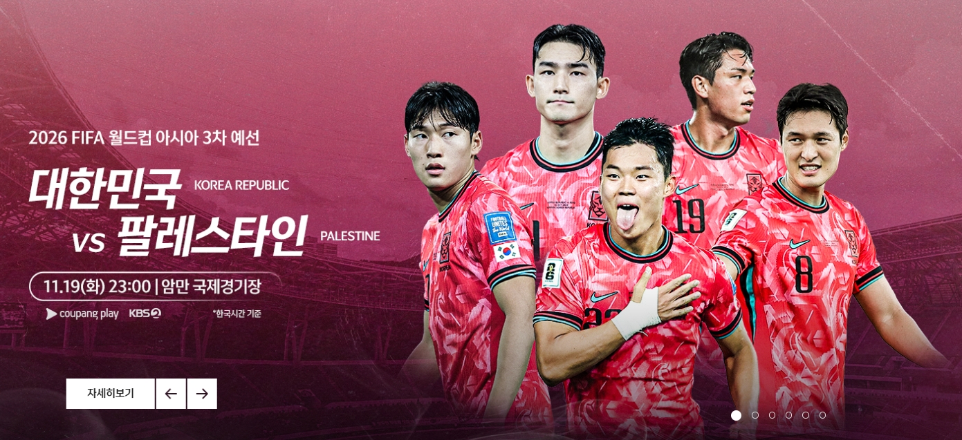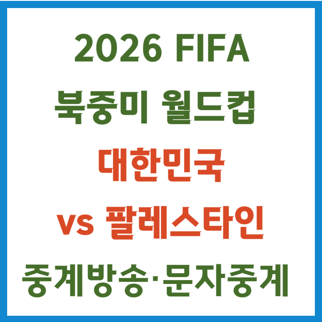 한국 축구 대표팀이 2026 국제축구연맹(FIFA) 북중미 월드컵 3차 예선 상대인 팔레스타인과 경기를 같습니다. 한국시간으로 19일 오후 11시 요르단 암만의 암만 국제경기장에서 월드컵 아시아 3차 예선 B조 6차전을 갖습니다. 중계채널은 KBS2와 쿠팡플레이에서 동시에 중계됩니다. 아래에서 해당되는 버튼을 누르시면 중계방송을 보실 수 있습니다.